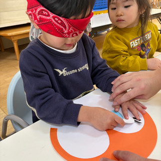 目隠しをする子。 目隠しせずにお目目パッチリの子👀。