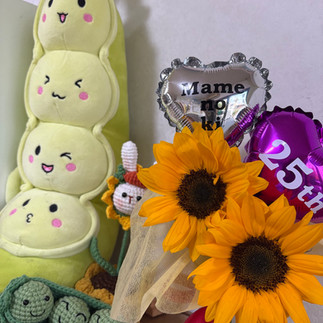 「まめのきおめでとう❣️🫛」「これからもよろしくおねがいします❣️」と、手には可愛い花束が💐✨✨