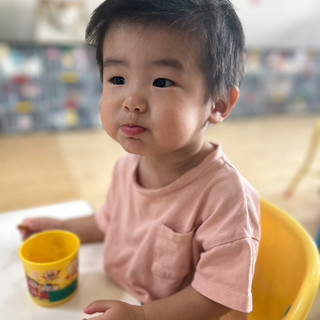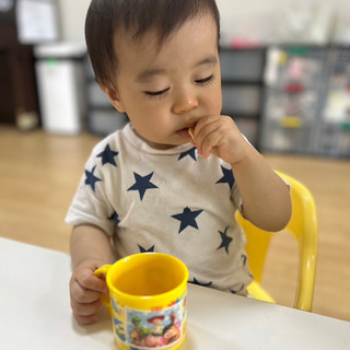 今日から入園のKくん、みんなと一緒にオヤツを食べてくれました🤗✨