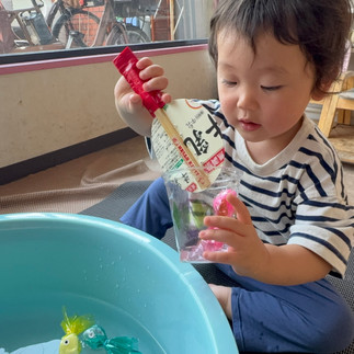 今朝も登園後すぐに水分補給をしてから遊び始めた豆っ子さんたち🫛