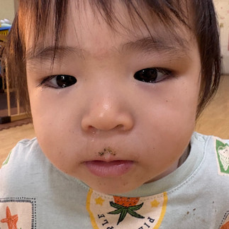 午後のオヤツに、黒豆のきな粉を食べてお口の周りがお髭みたいになっていましたよ〜🥸